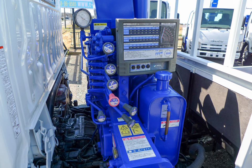 平成30年式日野デュトロ4WD標準ロング タダノZR264HRクレーン付車人気の4WD標準ロングボディに、タダノZR264HR(2.6t吊り)4段ブーム・ラジコン付クレーンを装備。
